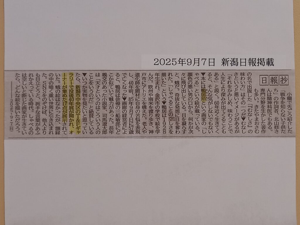 2025年9月7日 鴨居玲 40回目の命日にも